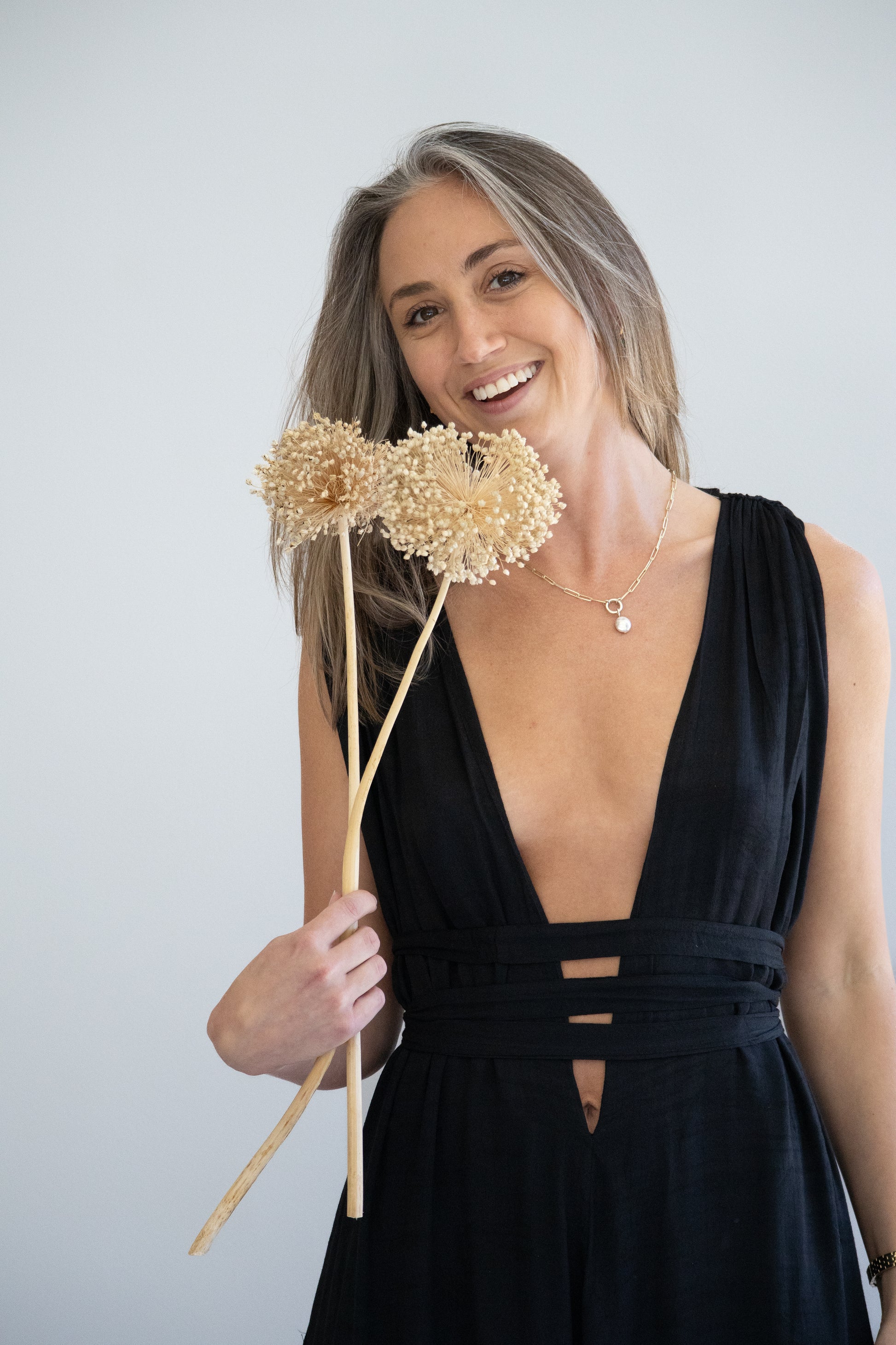 The jumpsuit is double-lined, so you can confidently wear anything — or nothing — underneath. And of course, it has pockets, because practicality is non-negotiable. Designed for ease, freedom and fluidity, the Aurelia is made for dancing, wandering, celebrating and simply feeling incredible.