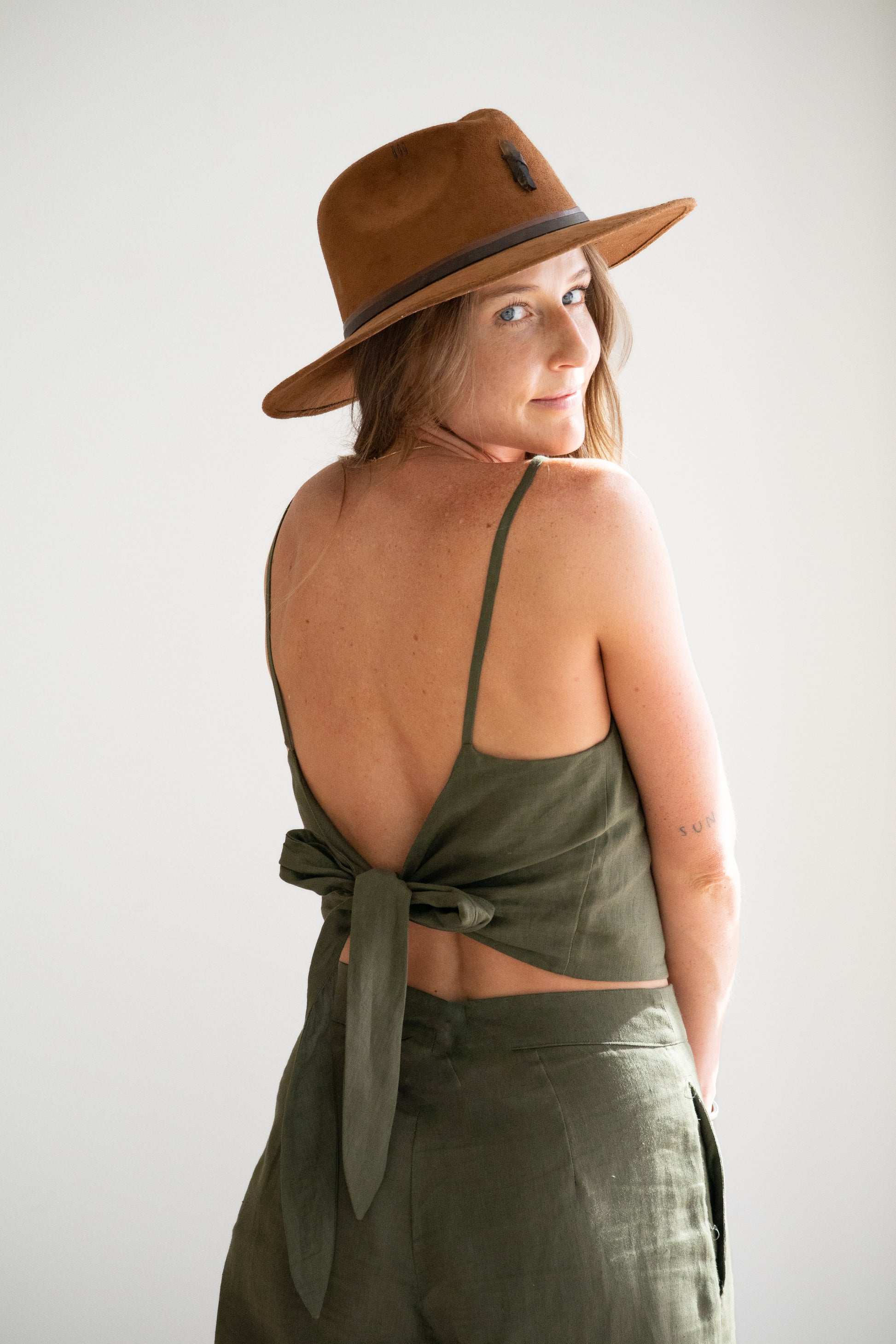 The thin straps and softly curved neckline create a practical, easy-to-wear shape that flatters without fuss. The highlight is the adjustable waist ties at the back — allowing you to shape the fit to your body and create a look that’s as relaxed or defined as you like. The open back adds a fresh, breezy feel (because who doesn’t love an open back?), perfect for warm days, travel, beach markets and slow outdoor moments.